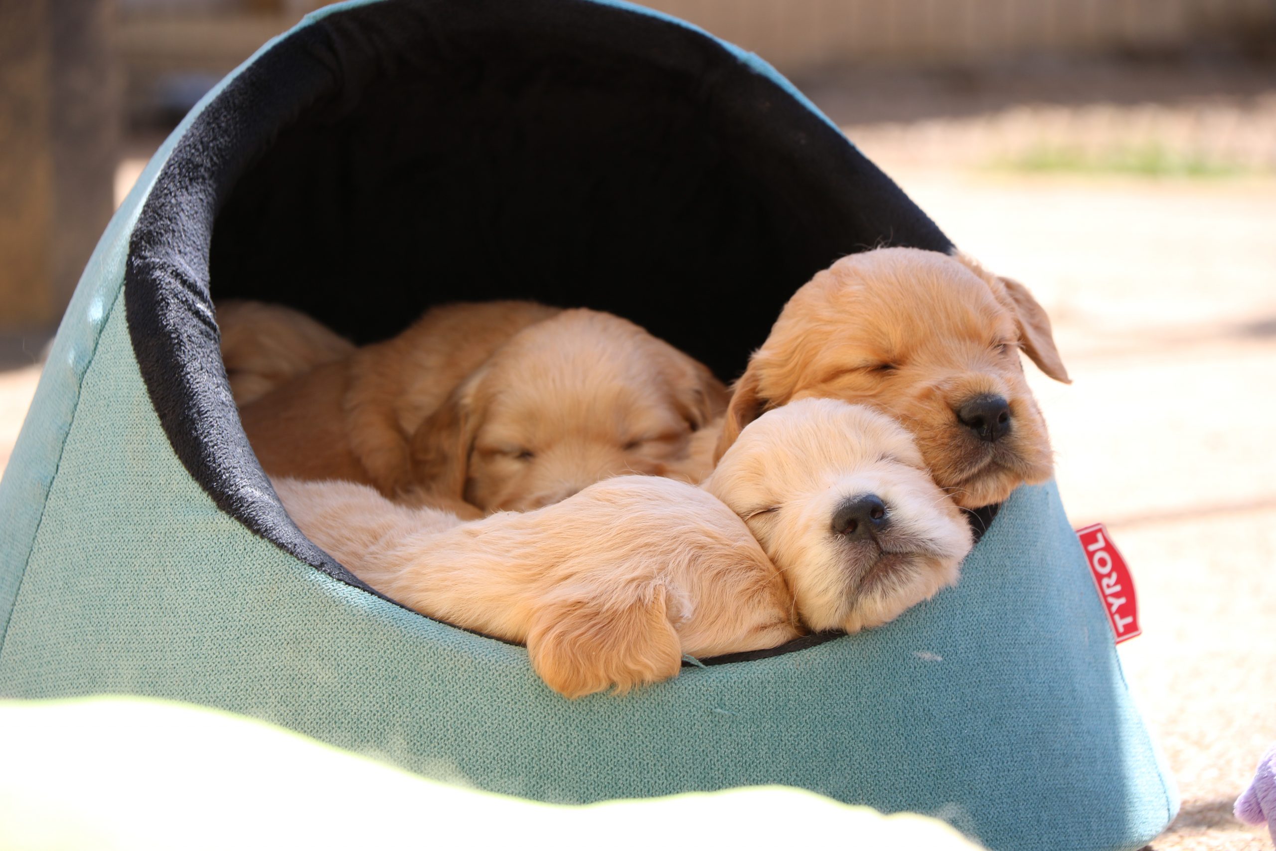 Durant environ les quatre premières semaines de leur vie, les chiots restent dans notre salon avec leur maman. Nous dormons avec eux ce qui nous permet d’avoir toujours un œil sur la petite famille.